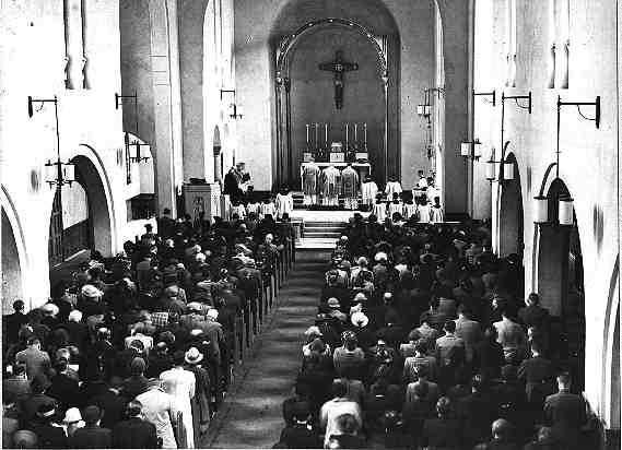| September 1938 | First Solemn High Mass for the opening of the new Church of the Sacred Heart. The Celebrant was Fr. Cartin, the Deacon Fr. Eckberry and the Subdeacon Fr. Waring. (see picture below) |