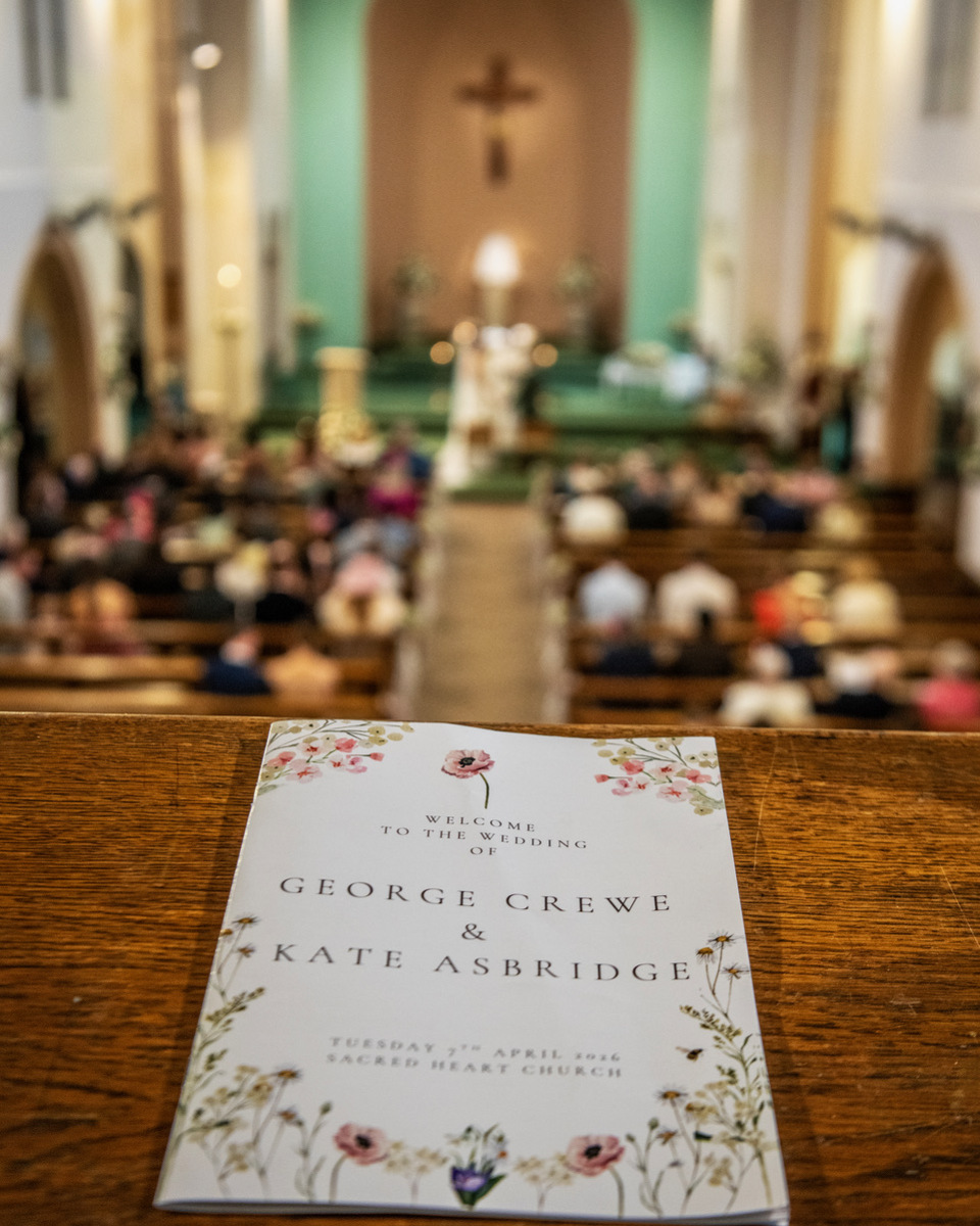 Congratulations to Kate & George on the occasion of their marriage at Sacred Heart on 7th April 2026 – A beautiful wedding on a beautiful day.